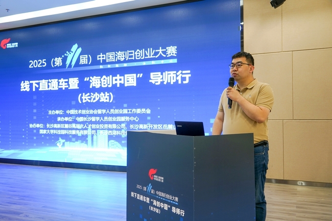 5月12日,2025(第11屆)中國海歸創業大賽線下直通車暨“海創中國”導師行(長沙站)活動在長沙留學人員創業園成功舉辦。本次活動由中國技術創業協會留學人員創業園工作委員會主辦,中國長沙留學人員創業園服務中心承辦,長沙高新區麓谷高層次人才創業投資有限公司、長沙高新開發區岳麓山國家大學科技園科技服務有限公司、長沙西湖科技創新服務有限公司協辦。留創園工委會產業與投資促進部部長寶玥、長沙留學人員創業園及協辦單位代表出席活動。