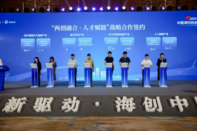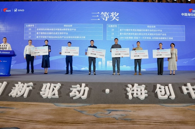 在頒獎儀式中,科技部、工信部、致公黨中央等大賽指導(dǎo)單位以及江蘇省、蘇州市有關(guān)部門領(lǐng)導(dǎo)為獲獎項目頒發(fā)了獎杯、獎金和證書。現(xiàn)場還作了中國海歸創(chuàng)業(yè)大賽10周年總結(jié),全面回顧了大賽舉辦10屆以來所重點開展的工作和取得的成果;發(fā)布了中國海歸創(chuàng)業(yè)大賽10周年TOP100優(yōu)秀企業(yè)榜單,根據(jù)歷屆參賽企業(yè)近年來在企業(yè)成長性、科技創(chuàng)新力、行業(yè)影響力、地區(qū)貢獻(xiàn)度等方面進(jìn)行綜合評定,有海柔創(chuàng)新、青禾晶元、杉數(shù)科技、斯乾智駕、漢陽科技、識光芯科、景略半導(dǎo)體、圣德醫(yī)療、英磁新能源等100家優(yōu)秀企業(yè)入選。此外,活動還為在大賽組織服務(wù)中作出重要貢獻(xiàn)、給予推動支持的一批單位頒發(fā)了中國海歸創(chuàng)業(yè)大賽10周年特別貢獻(xiàn)獎和組織貢獻(xiàn)獎,并舉行了中國海歸創(chuàng)業(yè)大賽成果轉(zhuǎn)化基地啟動儀式及項目簽約儀式。