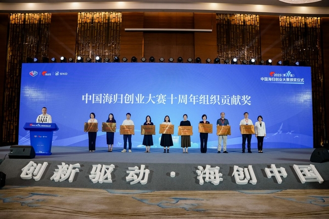 作中國海歸創(chuàng)業(yè)大賽10周年成果總結(jié),頒發(fā)特別貢獻(xiàn)獎、組織貢獻(xiàn)獎、TOP100優(yōu)秀企業(yè)獎