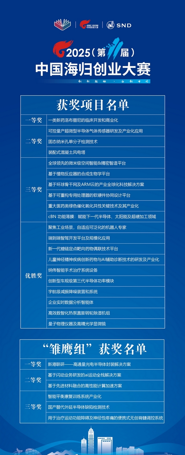 本屆大賽深入貫徹黨的二十大和中央人才工作會議精神,堅持平臺開放和機(jī)制創(chuàng)新,北京理工大學(xué)、南京大學(xué)首次加入聯(lián)合主辦,支持參賽人才項目與高校開展產(chǎn)學(xué)研深度合作。另有北京、上海、濟(jì)南、煙臺、昆山、丹陽、長沙、深圳、寧波、廈門、蘭州、呼和浩特等地20多家產(chǎn)業(yè)園區(qū)、科創(chuàng)載體協(xié)辦,全國300多家創(chuàng)業(yè)園區(qū)、投資機(jī)構(gòu)等企事業(yè)單位和高校參與賽事,在政策、空間、資本、孵化服務(wù)等方面配置優(yōu)質(zhì)資源,為項目技術(shù)產(chǎn)業(yè)化、商業(yè)化賦能。大賽聚焦“人才+科創(chuàng)+產(chǎn)業(yè)+金融”,組建專項基金撬動社會資本給予參賽項目優(yōu)先投資支持;舉辦“海創(chuàng)中國”英才行、產(chǎn)業(yè)融通對接會等專場活動,推動人才與科技創(chuàng)新和產(chǎn)業(yè)創(chuàng)新精準(zhǔn)對接、深度融合,同時通過“海創(chuàng)中國”導(dǎo)師行活動和常態(tài)化機(jī)制,為參賽項目提供創(chuàng)業(yè)輔導(dǎo)和陪伴式服務(wù)。此外,為加強(qiáng)早期項目培育,本屆大賽對于未在國內(nèi)注冊企業(yè)的參賽項目,單獨設(shè)立“雛鷹組”和相應(yīng)賽制獎項,發(fā)揮中國海歸創(chuàng)業(yè)大賽服務(wù)基地和各方資源作用,提供定制化輔導(dǎo)、政策匹配及落地支持。